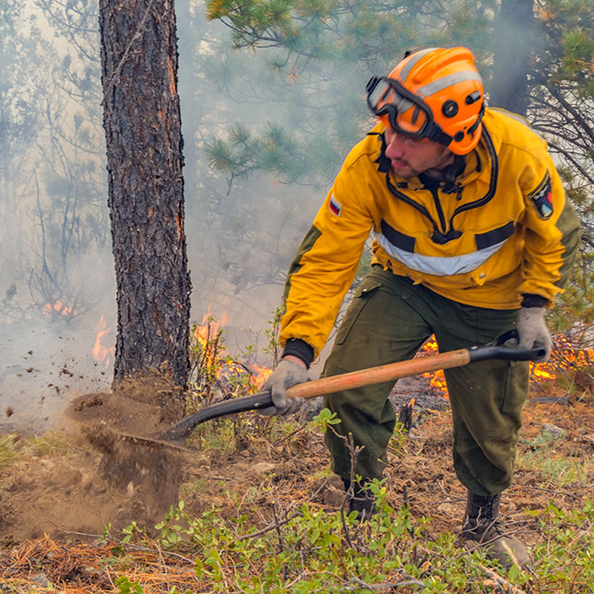 Группа лесников мчится на «буханках» с граблями, лопатами, ранцевыми лесными огнетушителями, касками и прочим снаряжением к месту возгорания. Как правило, рядом с ними тяжелая техника: бульдозеры, тракторы, автоцистерны, вездеходы, грузовые машины на тралах с тягачами. При небольших пожарах лесники могут обойтись и без тяжёлой техники.